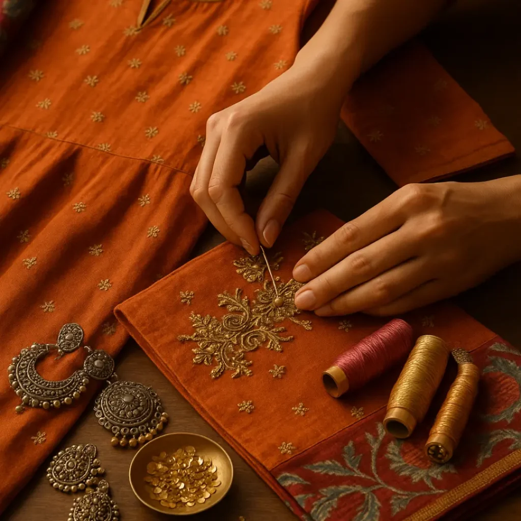 We blend timeless Indian artistry with modern elegance to create outfits that empower women.